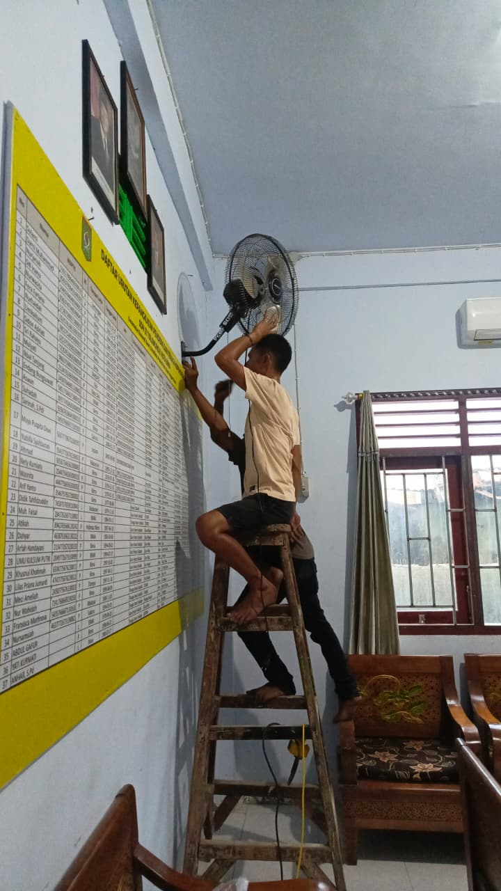 Dalam upaya meningkatkan kenyamanan dan menunjang kelancaran kegiatan di lingkungan sekolah, dilakukan pemasangan kipas angin di ruangan kepala sekolah SDN 21 Tolomundu.