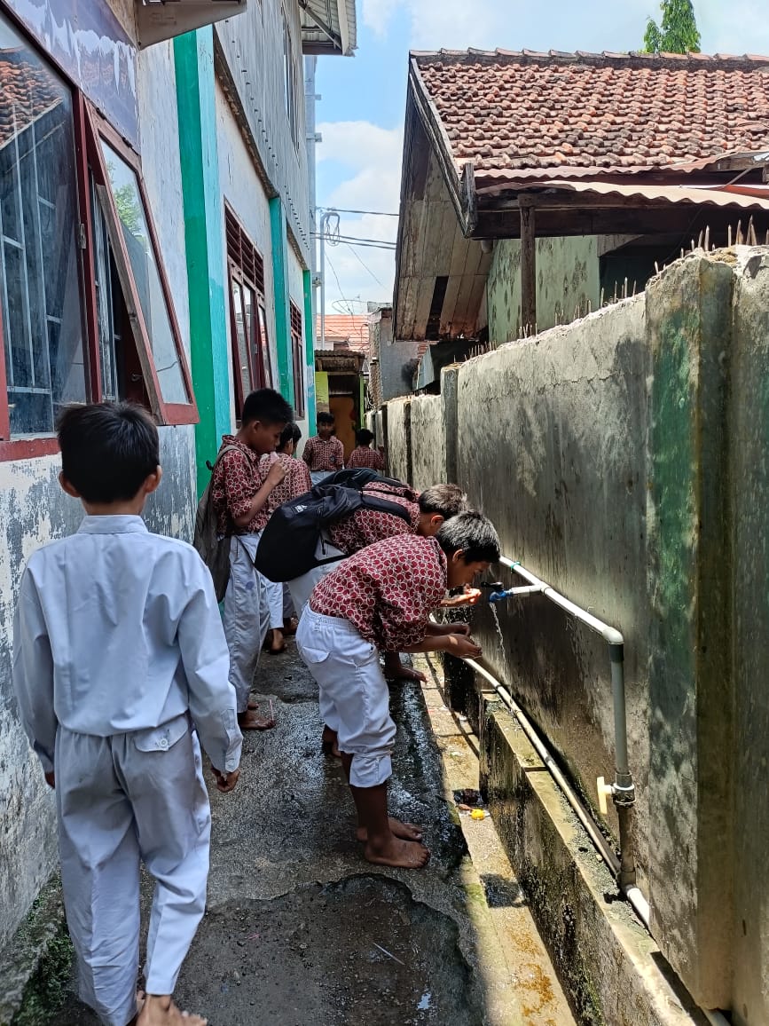Menjelang Salat Dzuhur Berjamaah, Siswa Kelas 6 Lakukan Pengambilan Air Wudhu