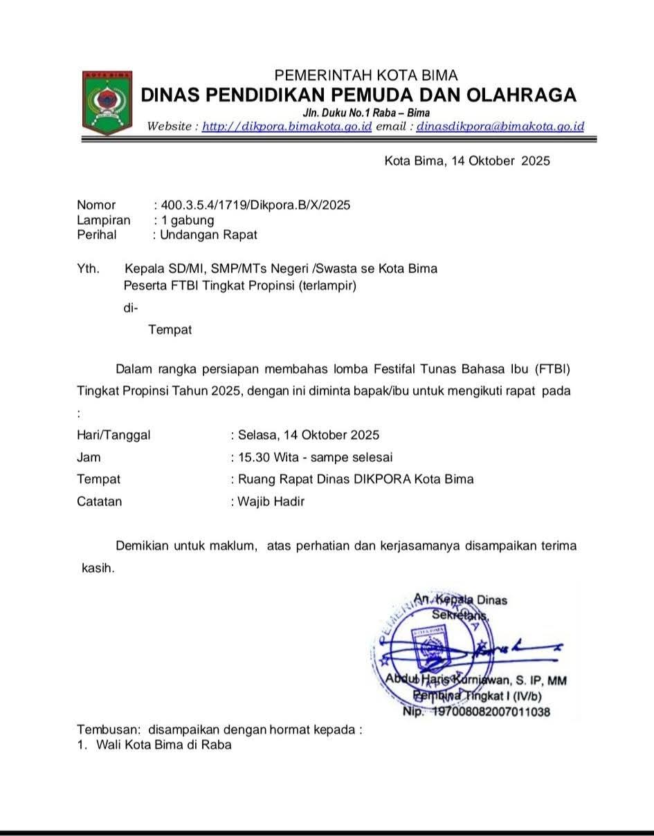 Undangan Rapat Membahas Lomba FTBI Tingkat Provinsi Tahun 2025