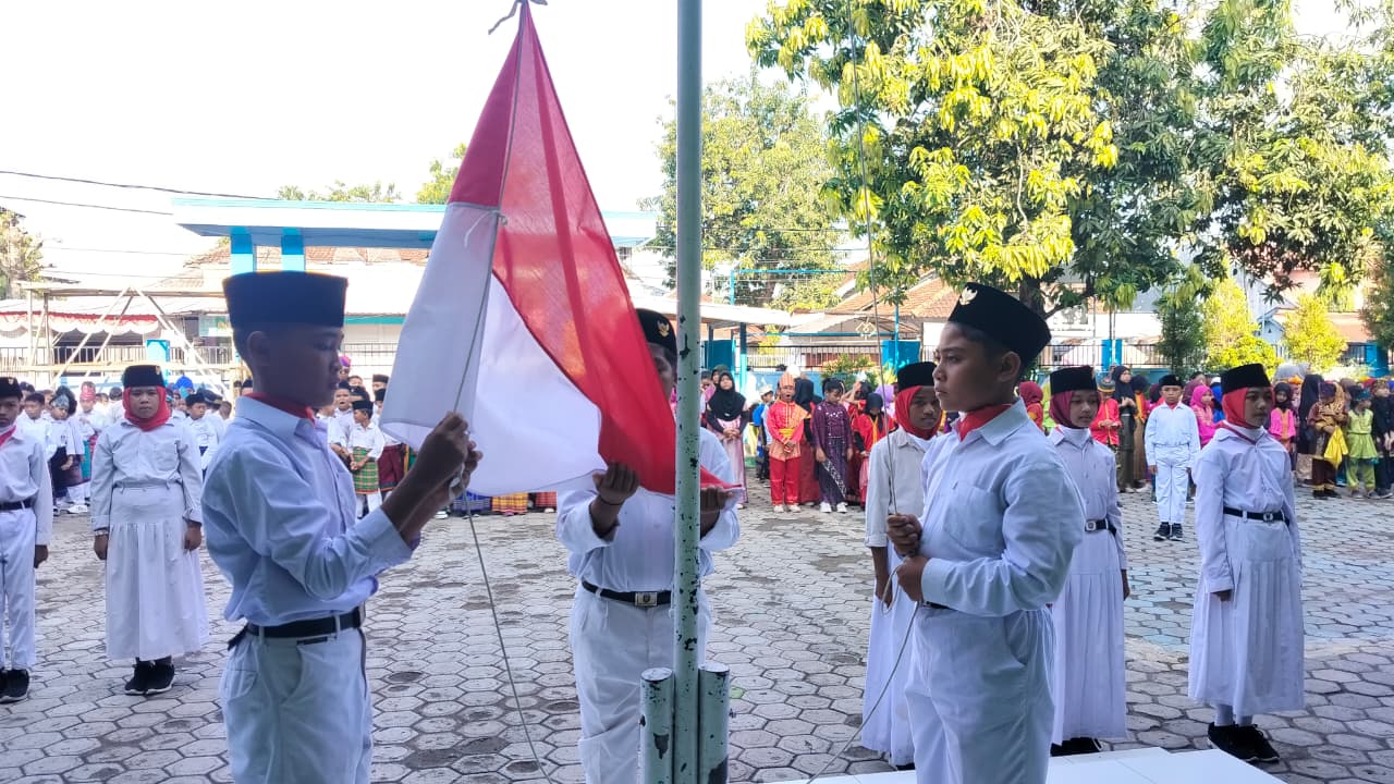 Momen Khidmat Pengibaran Bendera Merah Putih di SDN 21 Tolomundu