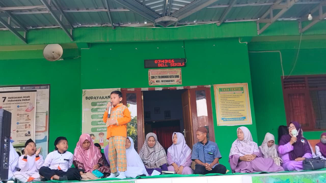 Suasana pagi di halaman Perpustakaan SDN 21 Tolomundu terasa lebih teduh dan khidmat ketika Ananda Abdurahim, salah satu siswa berprestasi kelas 3, tampil membacakan surah-surah pendek di depan teman-temannya. Dengan suara lantang dan penuh percaya diri, ia melafalkan ayat-ayat suci Al-Qur’an dengan tartil yang indah.