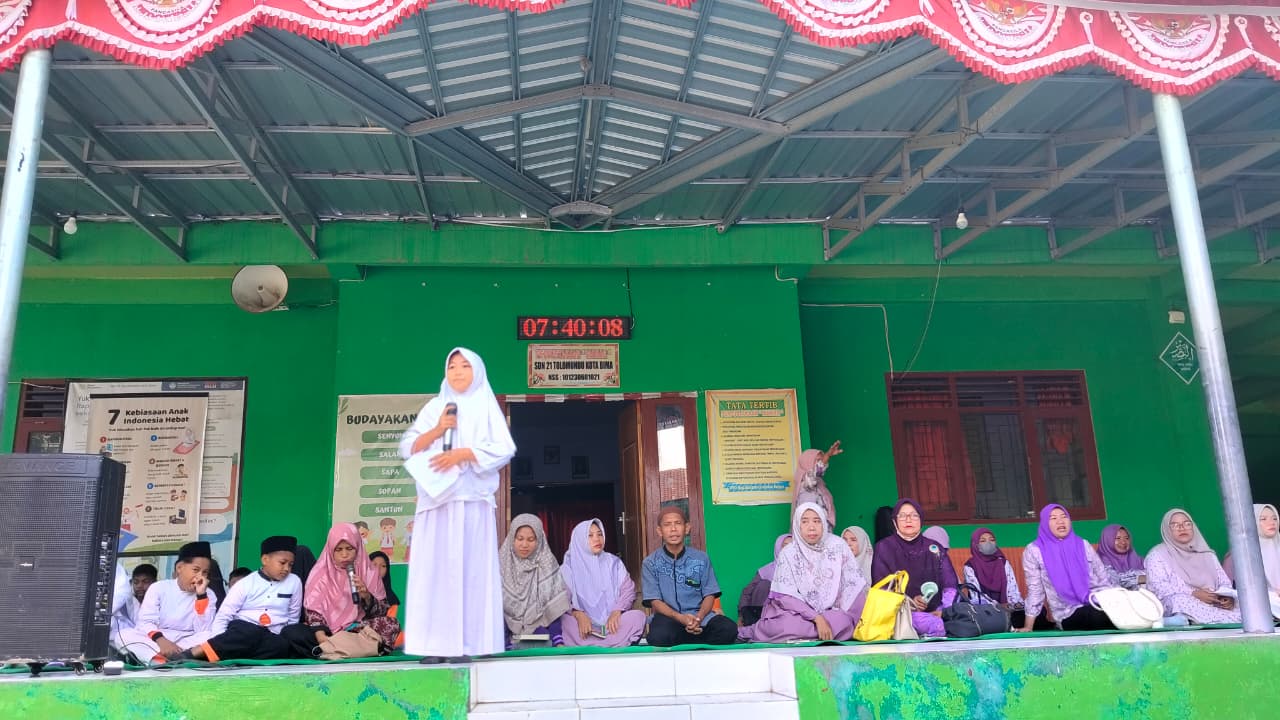 Suasana pagi di SDN 21 Tolomundu tampak penuh kehangatan dan kekhusyukan. Setelah seluruh siswa dan guru melaksanakan kegiatan Yasinan bersama di halaman sekolah, acara dilanjutkan dengan ceramah singkat yang disampaikan oleh salah satu siswa berbakat, Ananda Jihan.