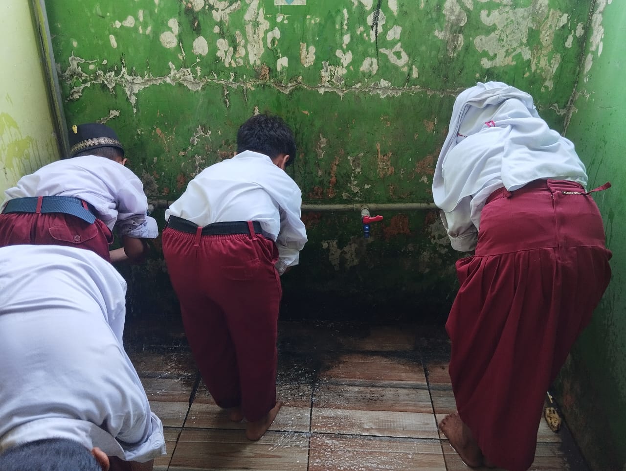 Belajar Tertib dan Bersuci: Siswa Kelas 4 SDN 21 Tolomundu Ambil Wudhu untuk Shalat Dzuhur Berjamaah