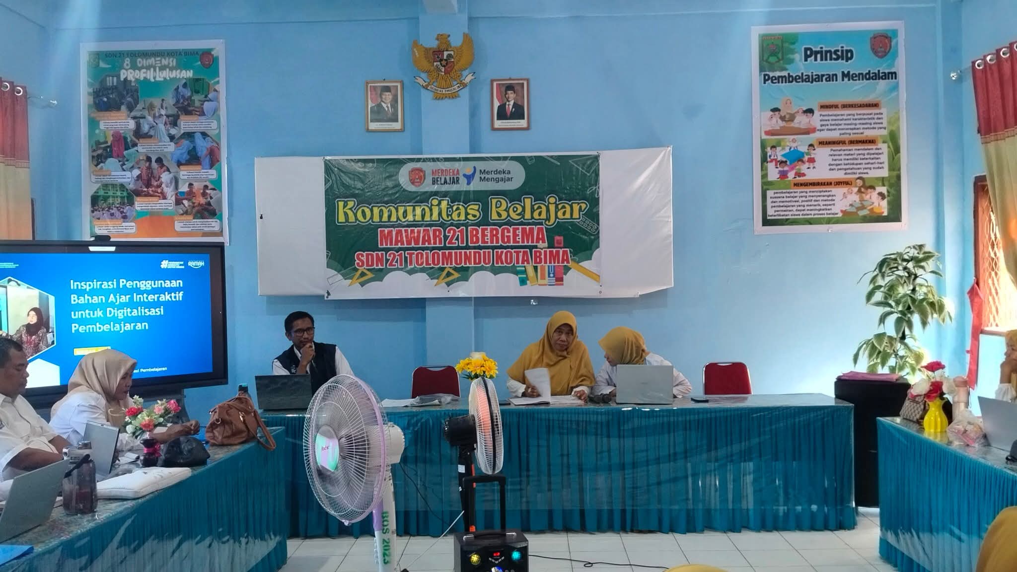 Kegiatan sosialisasi dan Pengimbasan oleh pak Hikmah, S. Pd terkait Digitalisasi pembelajaran Jenjang SD dan sosiologi menggunakan Papan Interaktif yang diikuti oleh bapak/ibu guru Mawarduasatu Kotabima