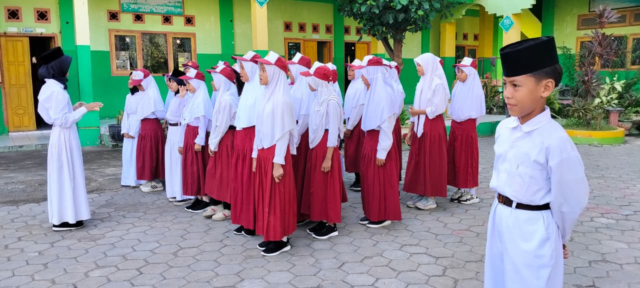 Pemimpin Paling Kanan Berdiri Tegap, Barisan Siswa Tampak Rapi dan Siap Mengikuti Upacara