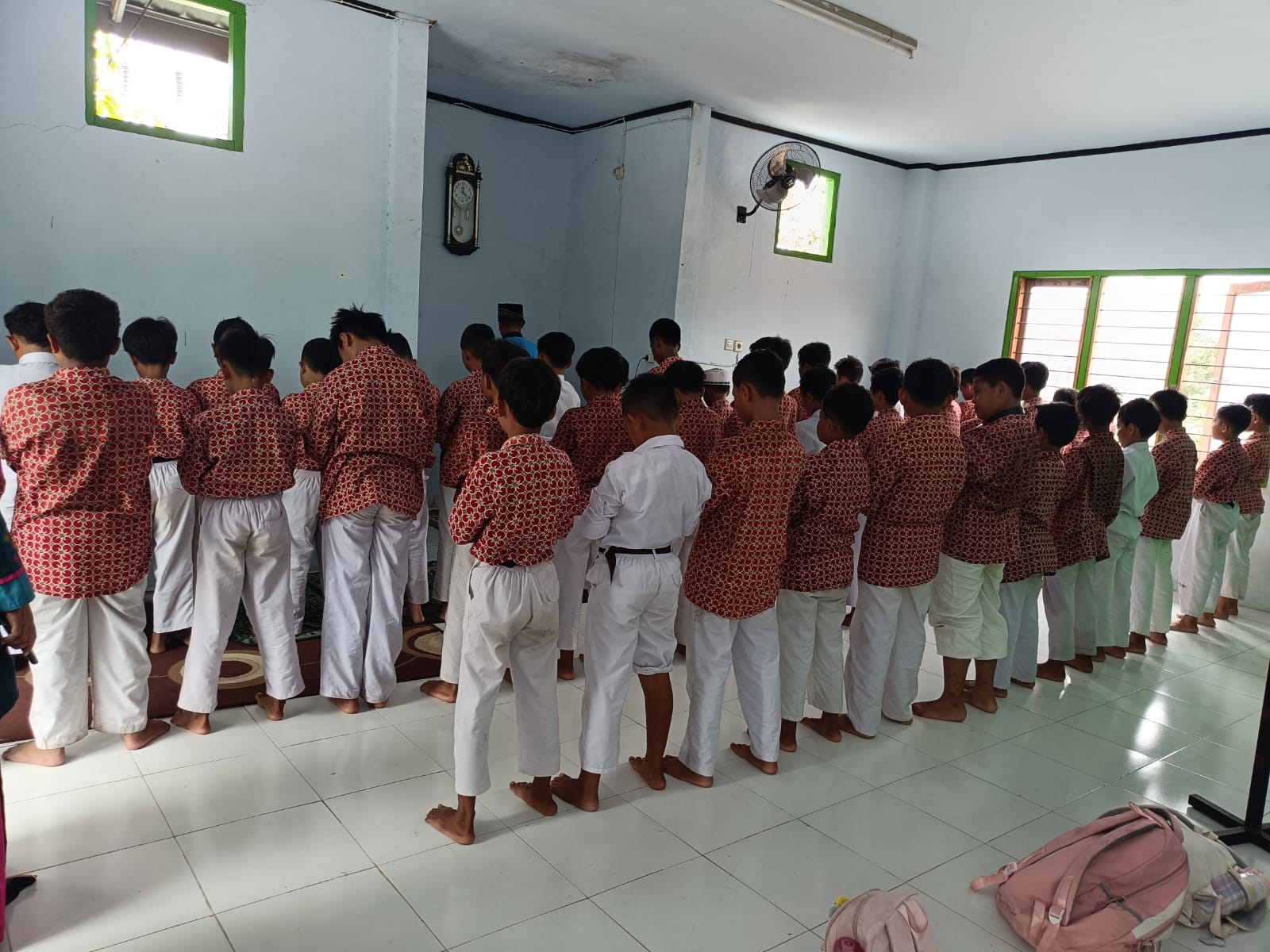 Siswa kelas 5 SDN 21 Tolomundu menunjukkan kedisiplinan dan sikap religius yang baik saat melaksanakan salat Zuhur di musala sekolah. Kegiatan ibadah rutin ini menjadi salah satu bentuk pembiasaan positif yang terus ditanamkan kepada peserta didik agar mereka tumbuh menjadi pribadi yang berakhlak mulia.
