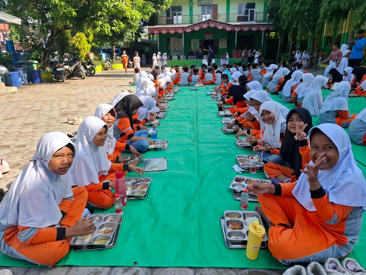 Setelah mengikuti rangkaian kegiatan pagi, para siswa akhirnya memasuki momen yang paling ditunggu, yakni mulai menyantap Sarapan Makanan Bergizi (MBG) yang telah dipersiapkan.