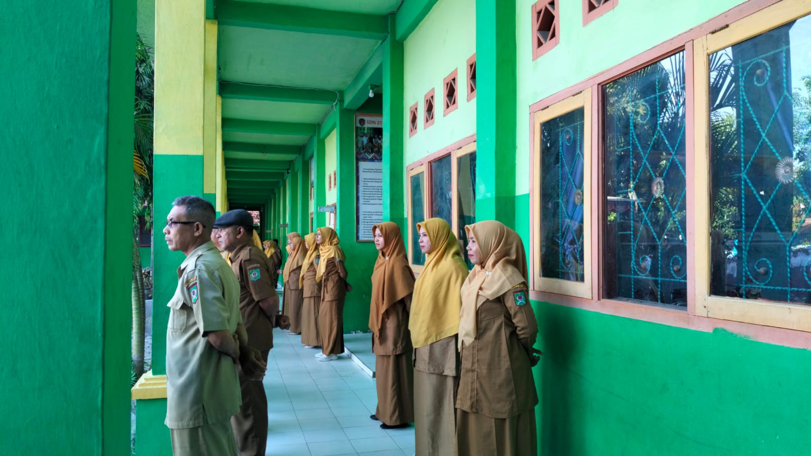 Para guru berdiri dengan tegap dan mengikuti pelaksanaan upacara bendera dengan penuh khidmat. Sikap ini mencerminkan rasa tanggung jawab, kedisiplinan, serta penghormatan terhadap nilai-nilai kebangsaan yang terus ditanamkan di lingkungan sekolah.