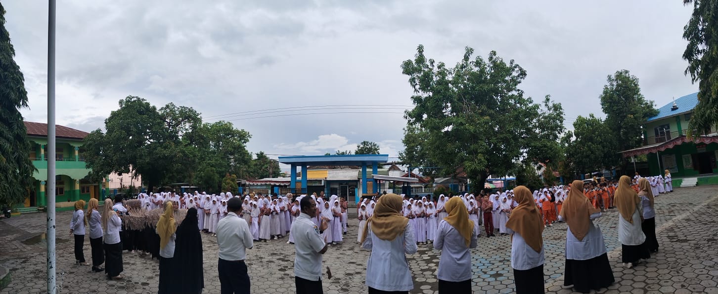 Pembinaan karakter yang dilaksanakan di halaman sekolah biasanya dilakukan sebelum kegiatan belajar mengajar dimulai. Seluruh siswa berbaris dengan rapi, mendengarkan arahan dari guru, serta mendapatkan motivasi dan nasihat yang membangun. Dalam kegiatan ini, guru-guru menyampaikan pentingnya kedisiplinan, tanggung jawab, kejujuran, sopan santun, dan semangat belajar.