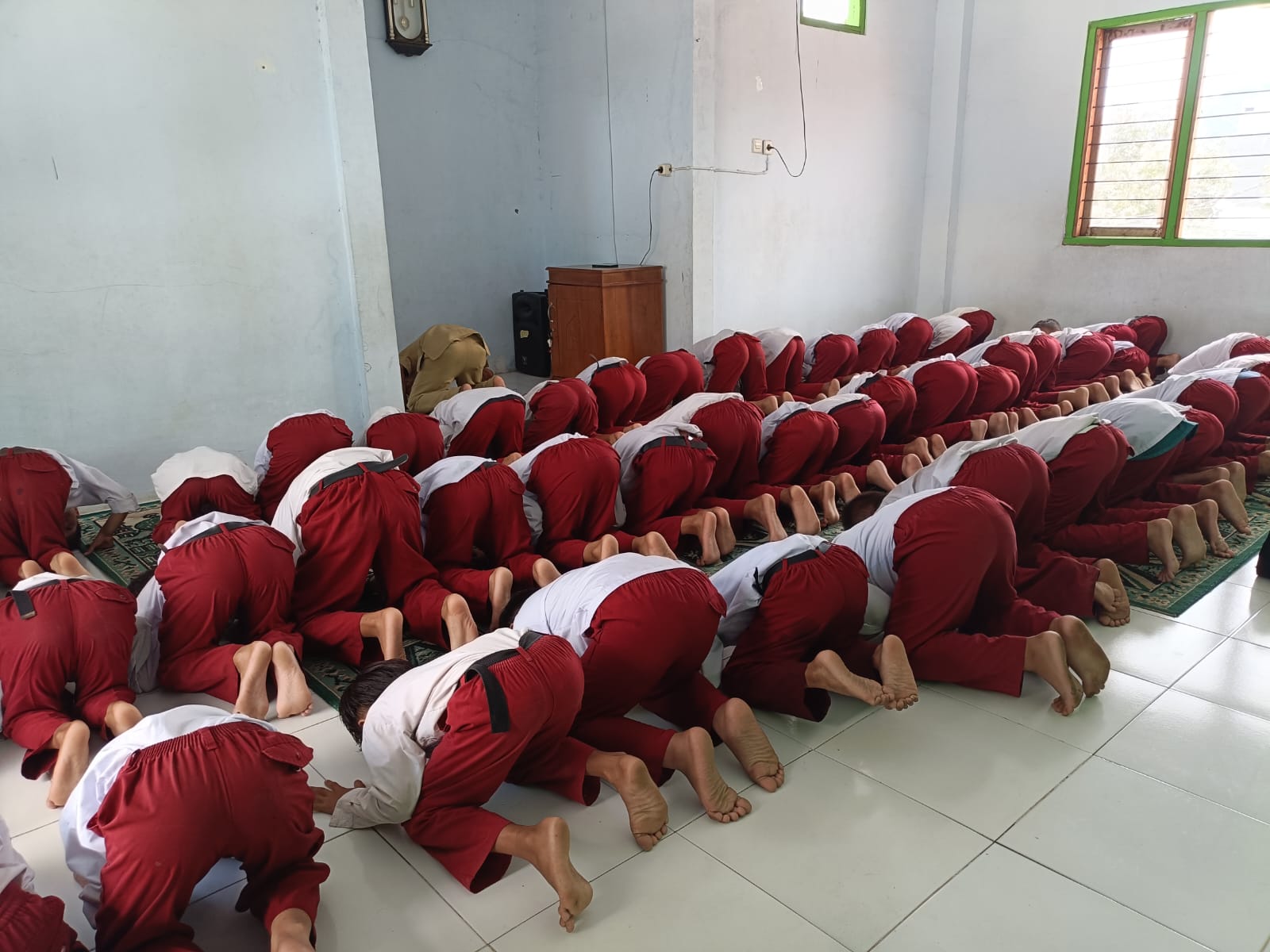 Momen Khidmat: Siswa Sujud dengan Khusyuk dalam Sholat Dzuhur Berjamaah