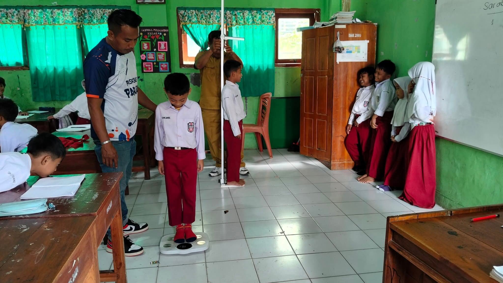 Kegiatan Pengukuran dan Berat Badan Siswa-siswi Kelas 2B Oleh Tim Kesehatan Puskesmas Paruga Kota Bima