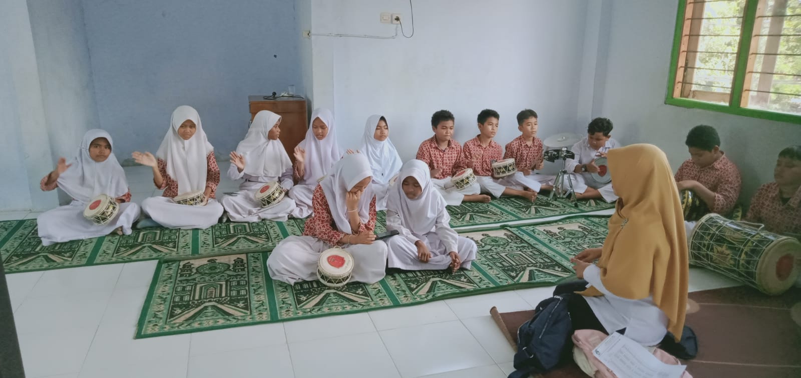 Siswa Kelas 6 SDN 21 Tolomundu Antusias Mengikuti Latihan Marawis di Bawah Bimbingan Ibu Sarinah, S.Pd.I