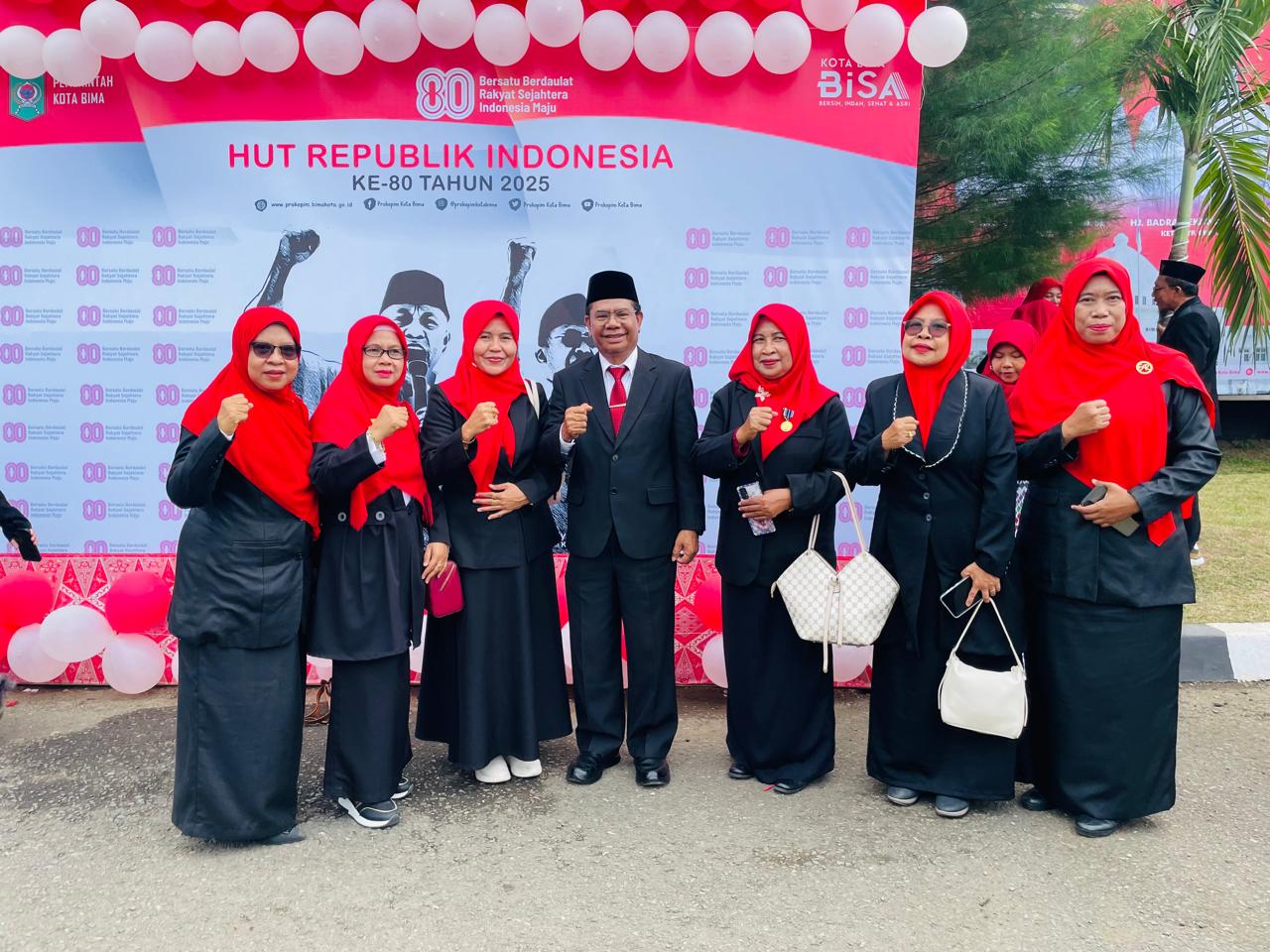 Kepala SDN 21 Tolomundu Ibu Sulami Ikuti Upacara HUT RI Ke-80 di Kantor Walikota Bima
