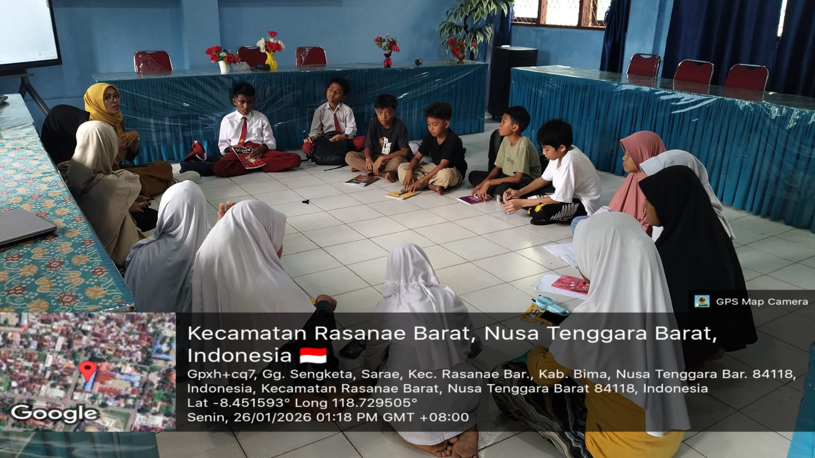Penyerahan Bahan Ajar dari Mahasiswa STKIP Taman Siswa Kota Bima Pasca Wawancara dan Observasi di Kelas I, II, dan III