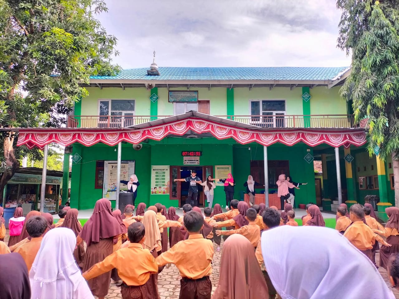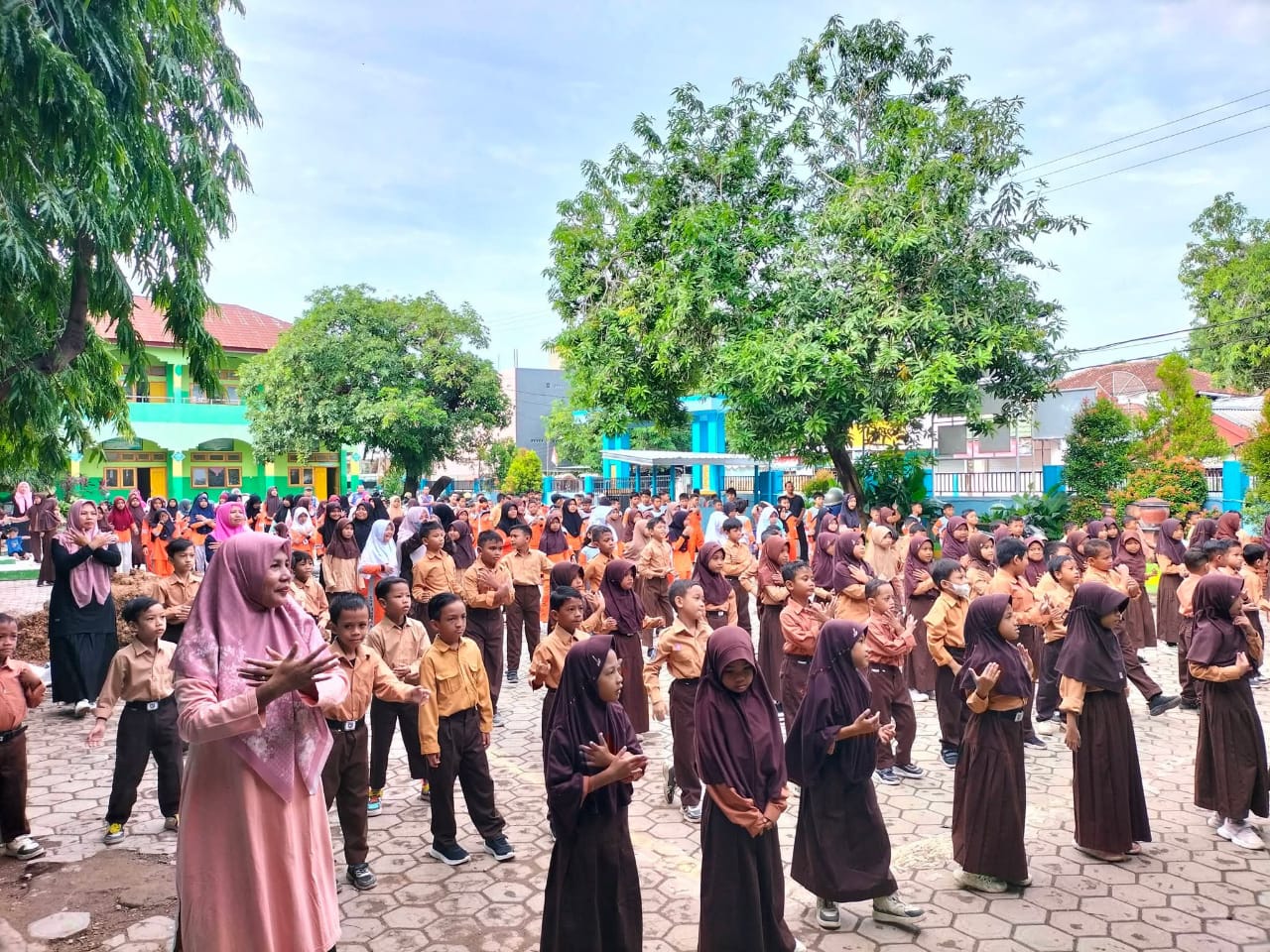 Keceriaan dan Semangat Siswa dalam Kegiatan Senam Bersama di Halaman Sekolah