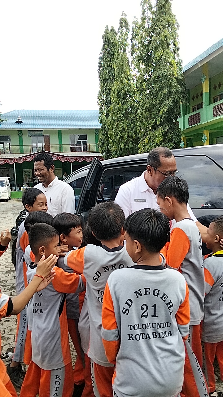 Sambutan Hangat Siswa SDN 21 Tolomundu untuk Kepala Dinas Dikpora Kota Bima, Bapak H. Mahfud, M.Pd