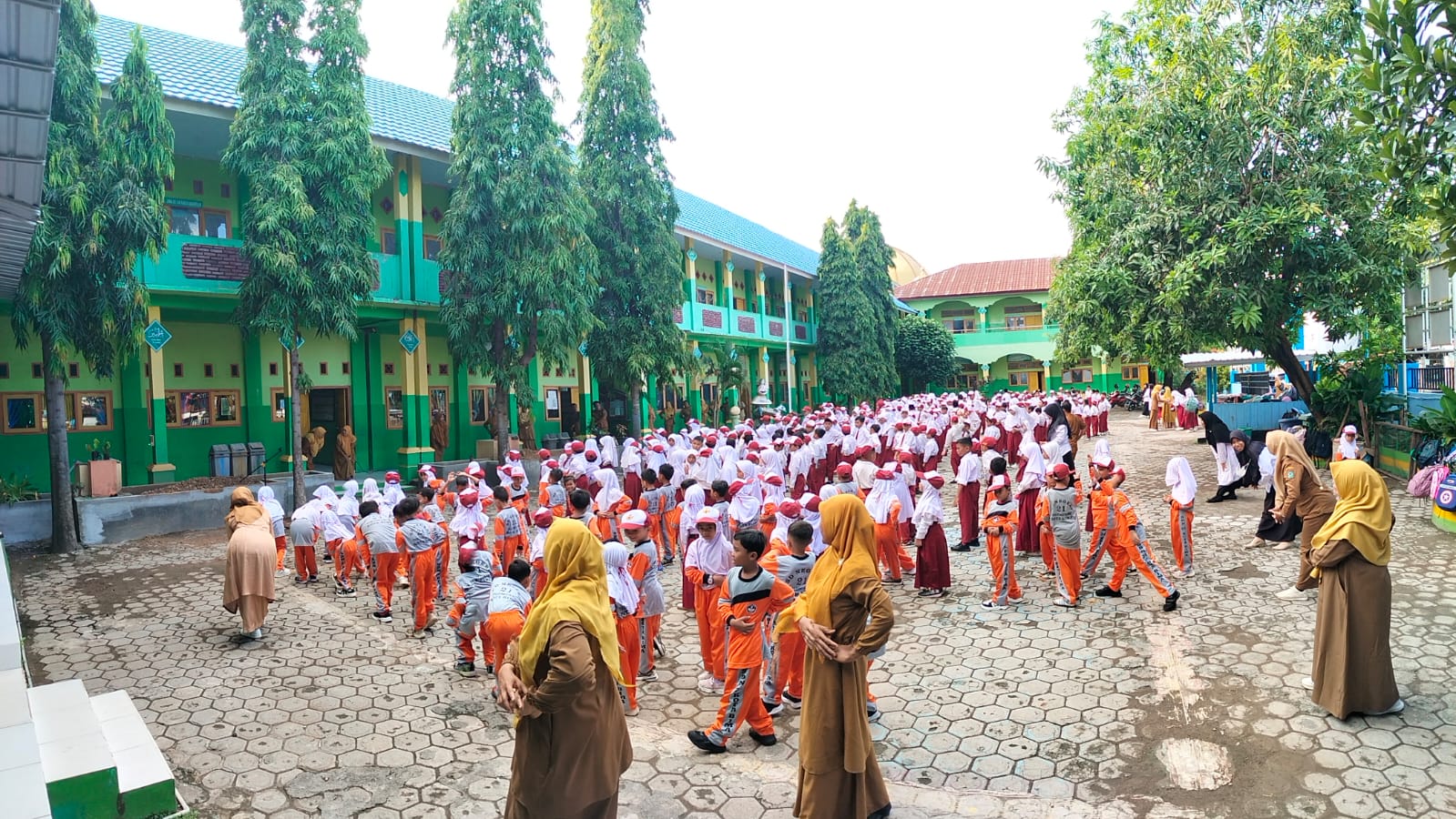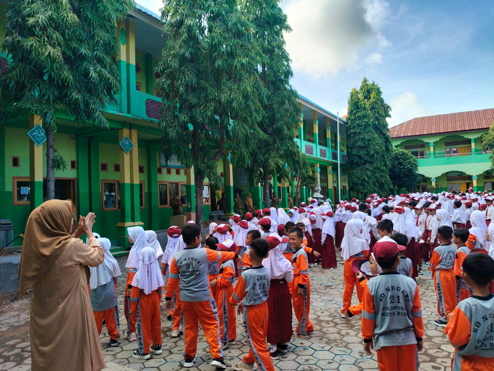 Siswa Berdiri dengan Teratur sebagai Wujud Disiplin saat Kegiatan Pembinaan di SDN 21 Tolomundu Kota Bima