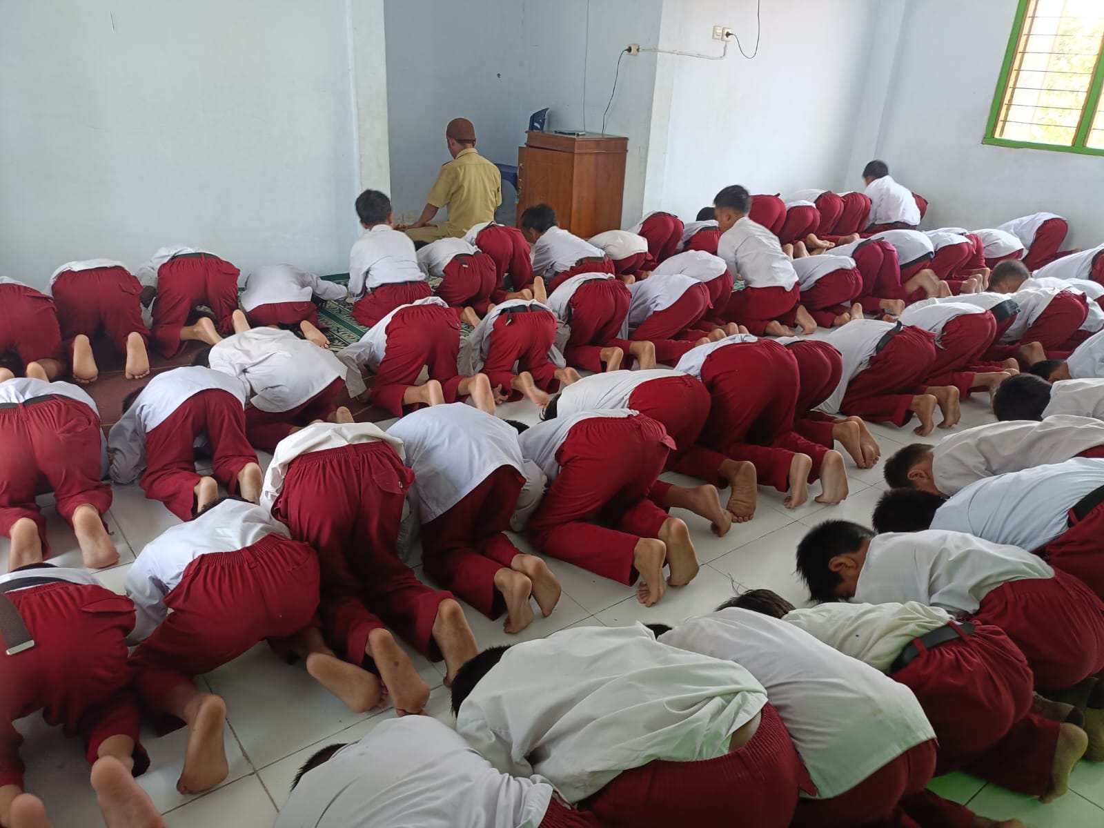 Khusyuknya Salat Dzuhur Berjamaah yang Diimami oleh Guru Pendidikan Agama Islam