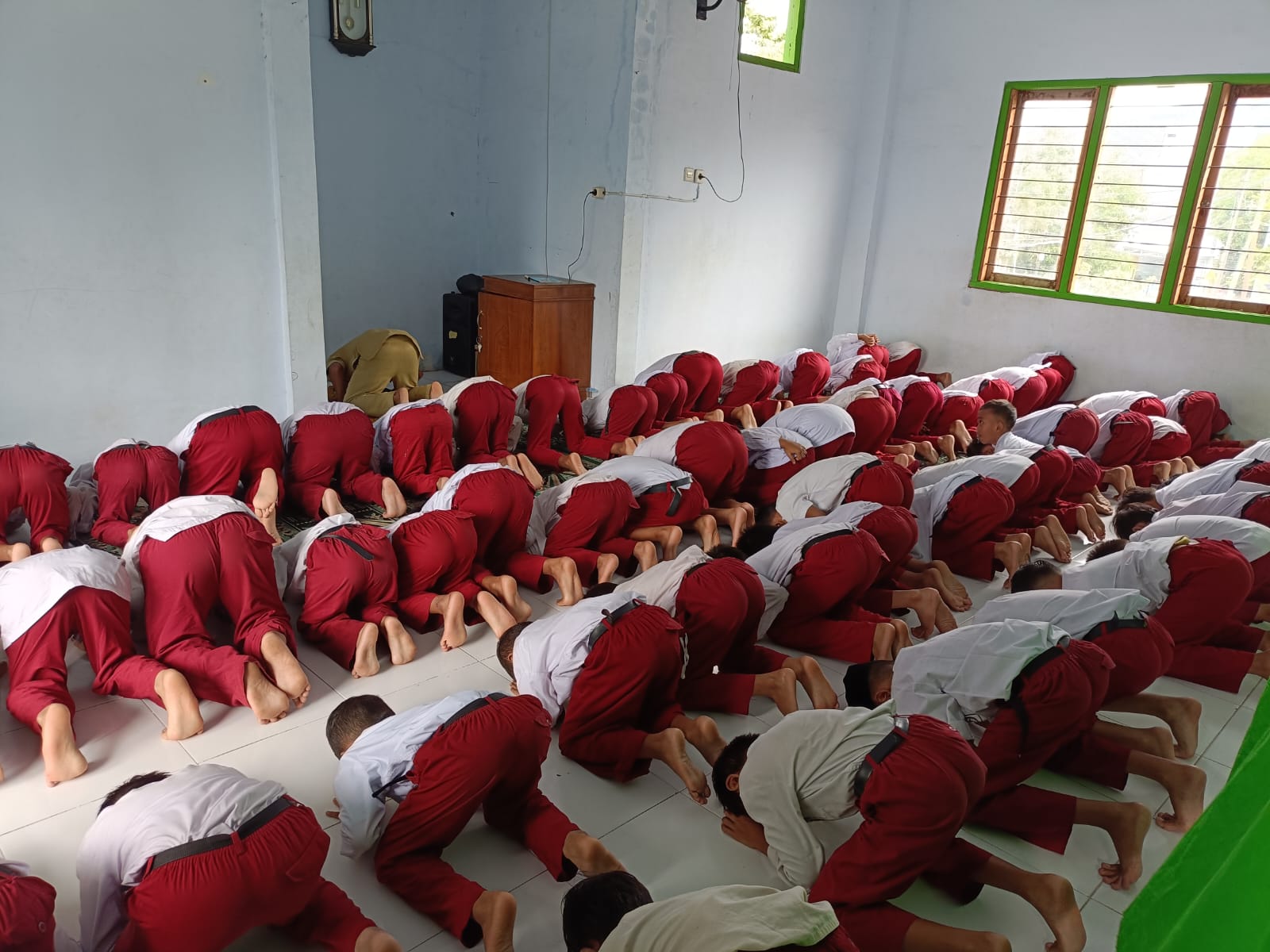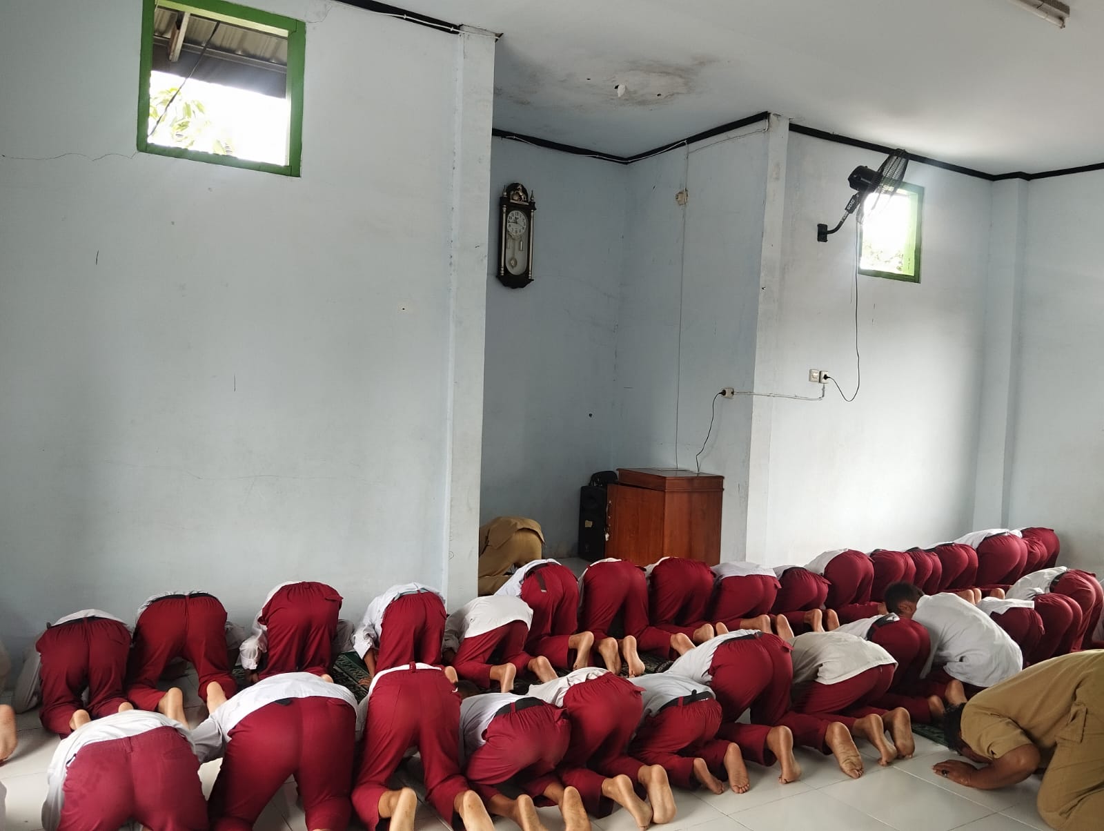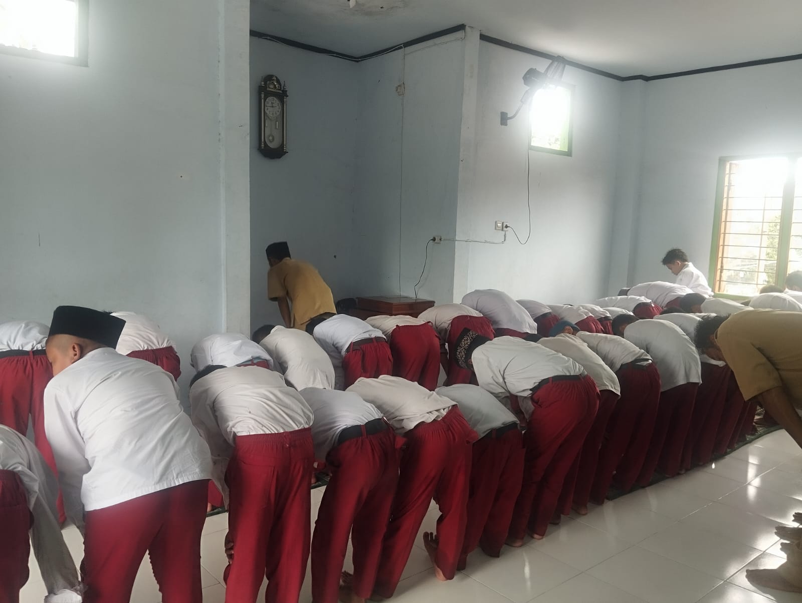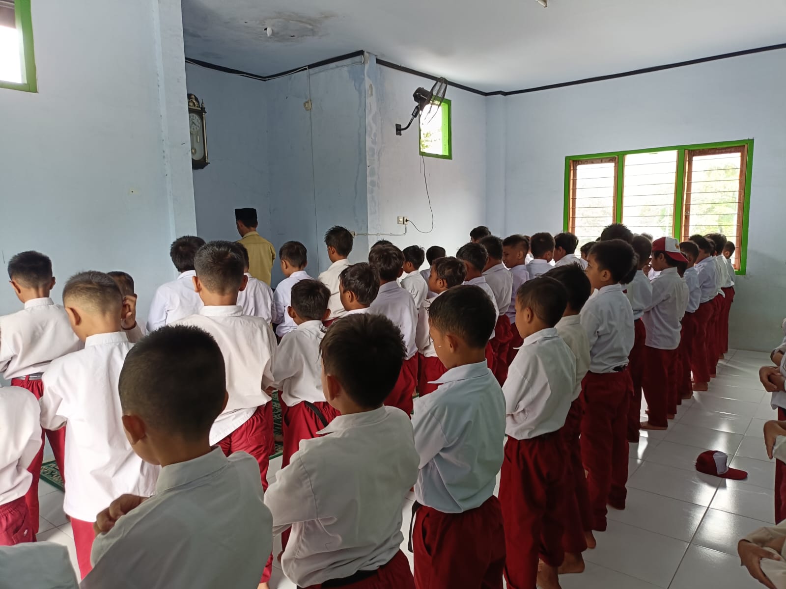 Guru Memimpin Sholat Dzuhur Berjamaah Siswa Kelas 3