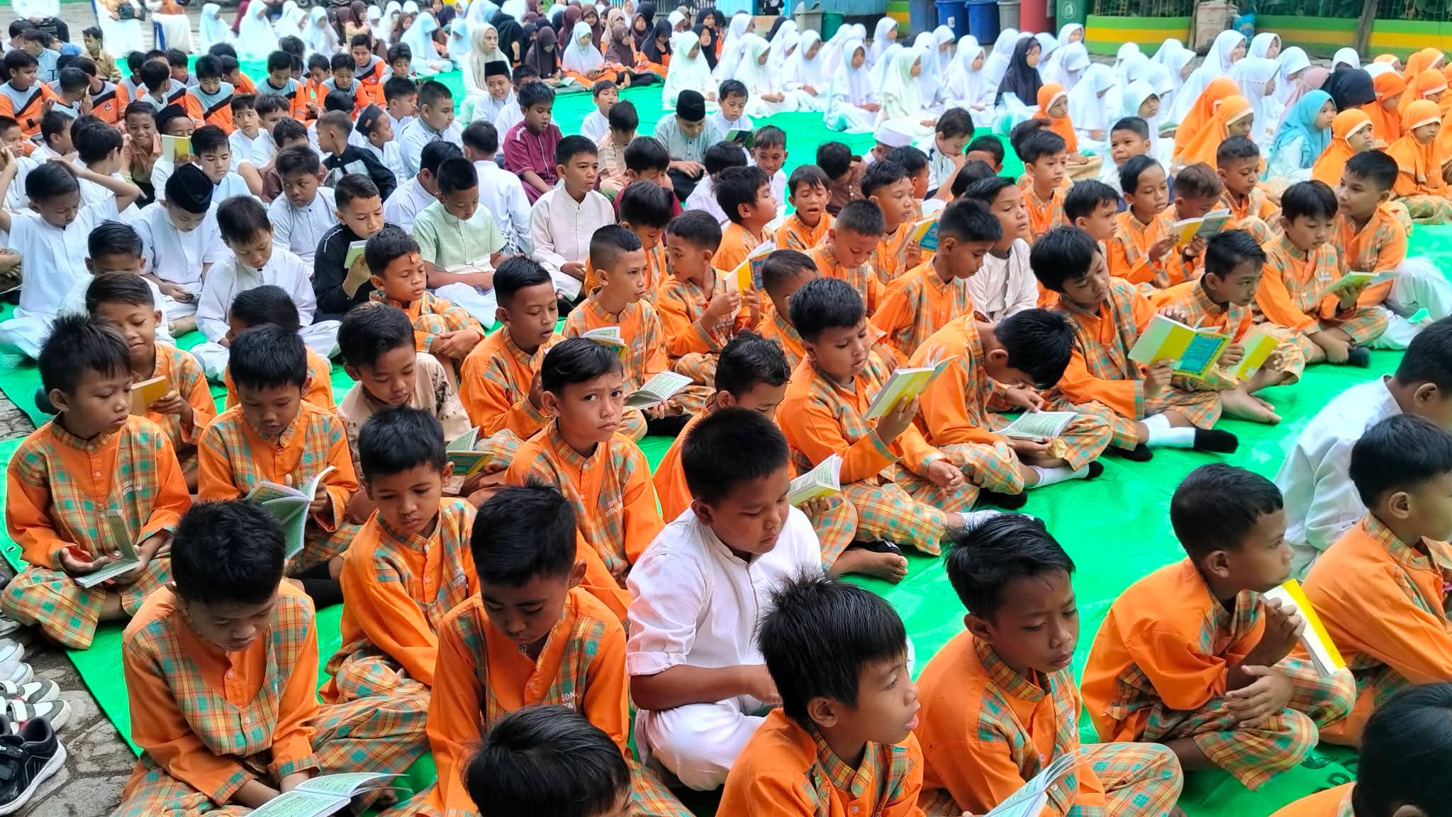 Siswa dan siswi melaksanakan pembacaan Yasin dengan tertib dan khidmat